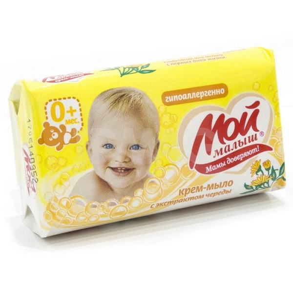 19. Средства Гигиены » 19.5. Мыло » 19.5.2. Кусковое мыло » 19.5.2.2. Туалетное мыло » Крем-мыло туалетное [Мой малыш] [с экстрактом череды] [100гр] [134178] [6/96]*