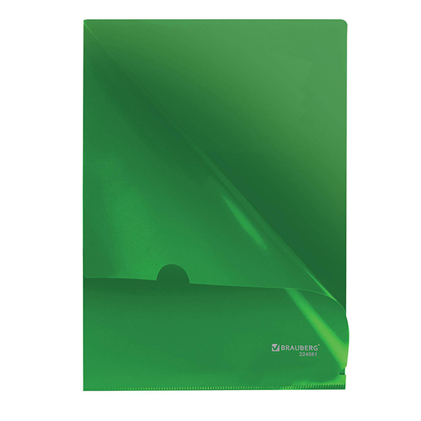 16. Канцелярия » 16.3. Офисные принадлежности » 16.3.2. Папки и системы архивации » Папка-уголок BRAUBERG, зеленая, 0,10 мм,[223965][/1]