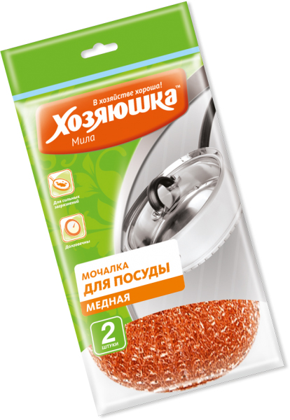 06. Хозтовары/Товары для дома » 6.1. Инвентарь для стирки/уборки » 6.1.1. Губки » 6.1.1.3. Губки металлические » Мочалка д/посуды [Хозяюшка Мила] [2шт] [спираль/медн] [КГ-04] [02012] [/100]*