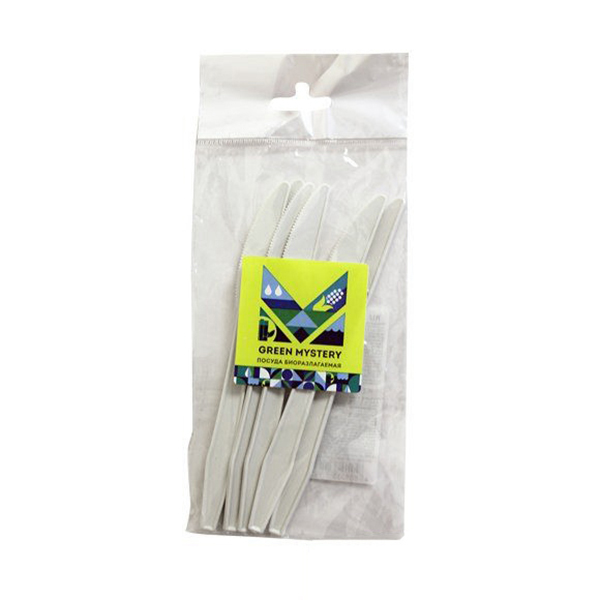 02. Одноразовая продукция » 2.4. Посуда Эко » 2.4.3. Тарелки ЕСО, столовые приборы ЕСО » Нож [Green Mystery] [кукурузного крахмала] [165мм] [192101] [6шт/уп] [/80]*