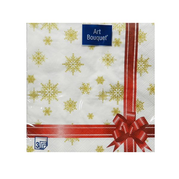 24. Бумажная продукция бытового назначения » 24.4. Салфетки НГ » Салфетки [Art Bouquet] [33*33] [20л] [3-х сл.] [Подарок красная лента NEW] [37511] [НГ] [/12]*