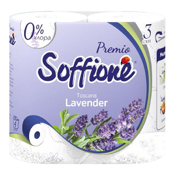 24. Бумажная продукция бытового назначения » 24.1. Туалетная бумага » 24.1.3. Туалетная бумага трехслойная » Т/б [Soffione Premio] [Тоскана Лаванда] [3сл/4рул] [без хлора] [10900212/10900047/10900397] [/10]*