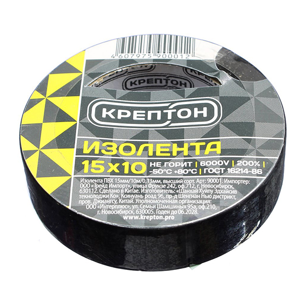 10. Упаковочные материалы » 10.4. Расходные материалы » 10.4.3. Клейкие ленты » 10.4.3.3. Изолента » Изолента [Крептон] [15мм*20м] [черная] [90011] [10/100]*
