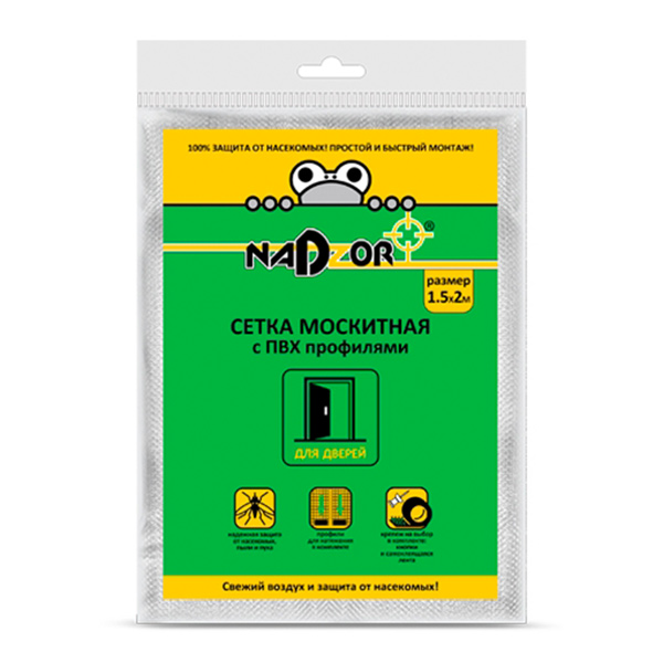21. Инсектициды » 21.1. Средства от вредителей » 21.1.6. Занавески от насекомых » Сетка москитная с ПВХ профилями[1.5*2м][Nadzor][кнопки/самокл.лента][в пак.][белая][MSN020PPW][/20]*