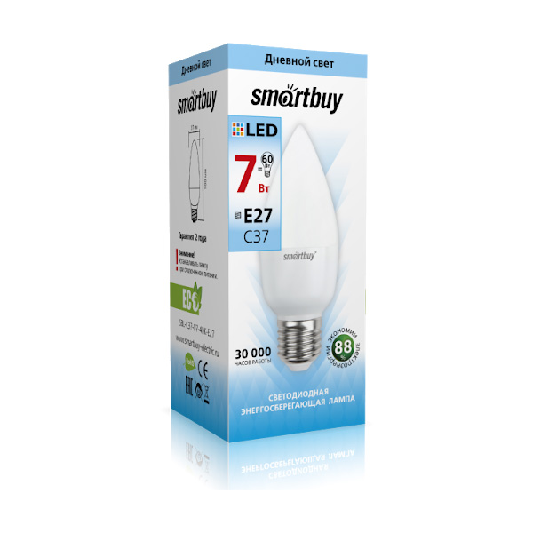 08. Электротовары » 8.1. Лампы » 8.1.3. Лампы светодиодные » Лампа [Smartbuy] [светодиод] [С37-07W-4000-E27] [10/100]*