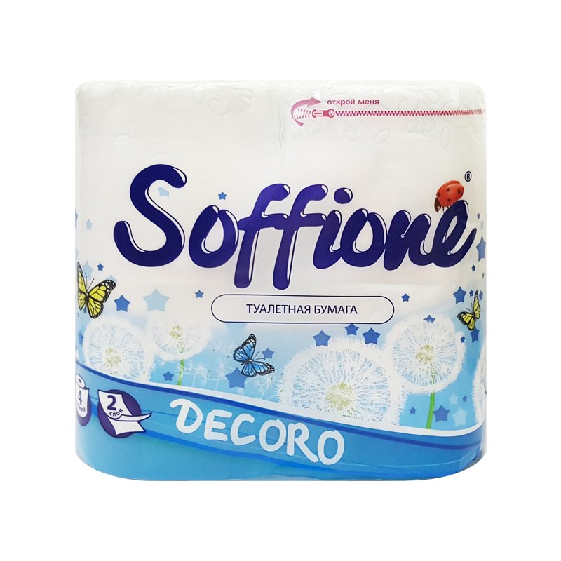 24. Бумажная продукция бытового назначения » 24.1. Туалетная бумага » 24.1.2. Туалетная бумага двухслойная » Т/б [Soffione Decoro] [голубая] [2сл/4рул] [без хлора] [10900221] [/10]*