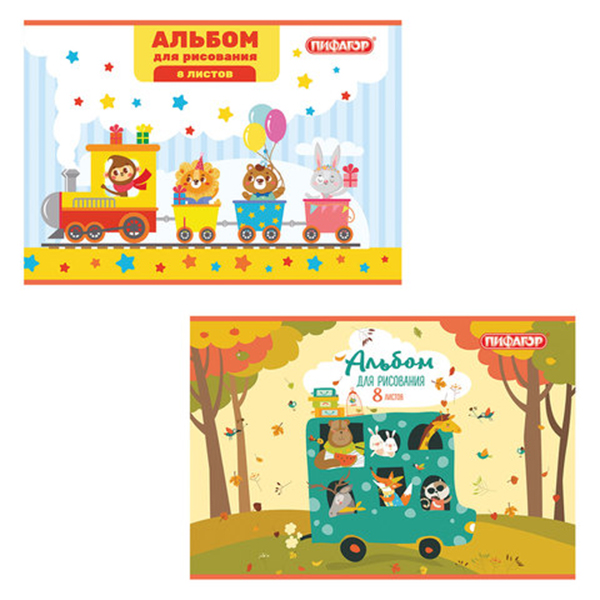 16. Канцелярия » 16.1. Бумажная Продукция » 16.1.2. Альбомы » Альбом для рисования А4, 8л, скоба, обложка офсет,ПИФАГОР,200х285мм,"Веселое путешествие"[104850]*