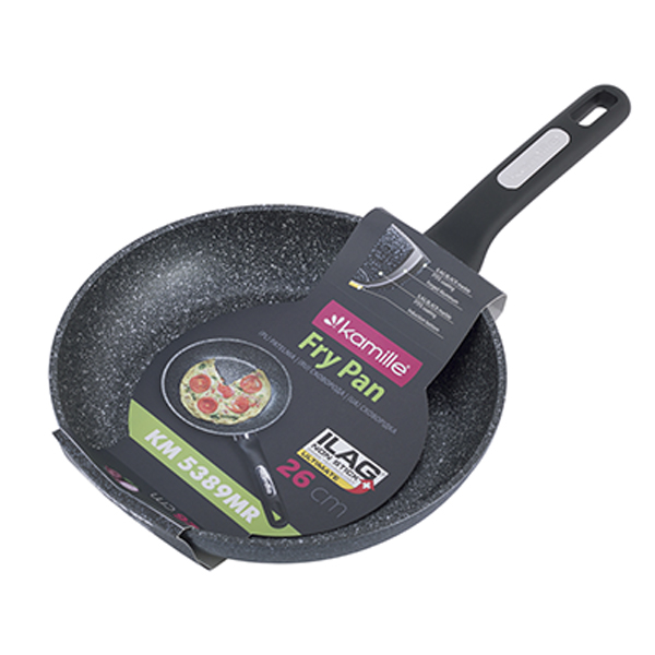 05. Для кухни » 5.1. Посуда и материалы для приготовления » 5.1.2. Сковороды, блинницы, сотейники » 5.1.2.1. Сковороды » Сковорода [26см] [Kamille] [из алюминия] [с покрытием чёрный мрамор] [5389MR] [/6]*