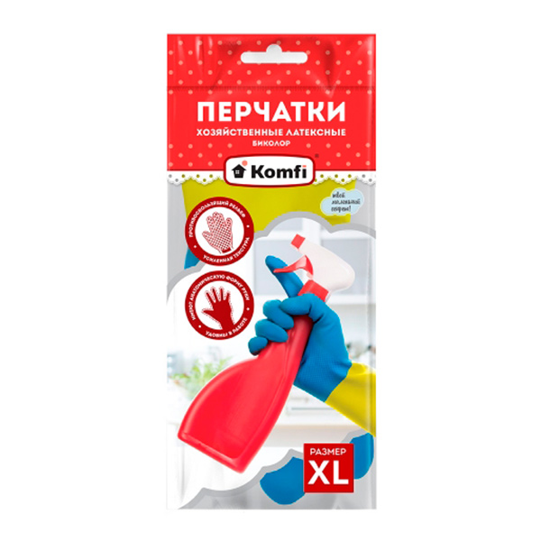 Перчатки хозяйственные латексные [Komfi] [Биколор] [XL] [синий+желтый] [BICOLO4] [12/144]*