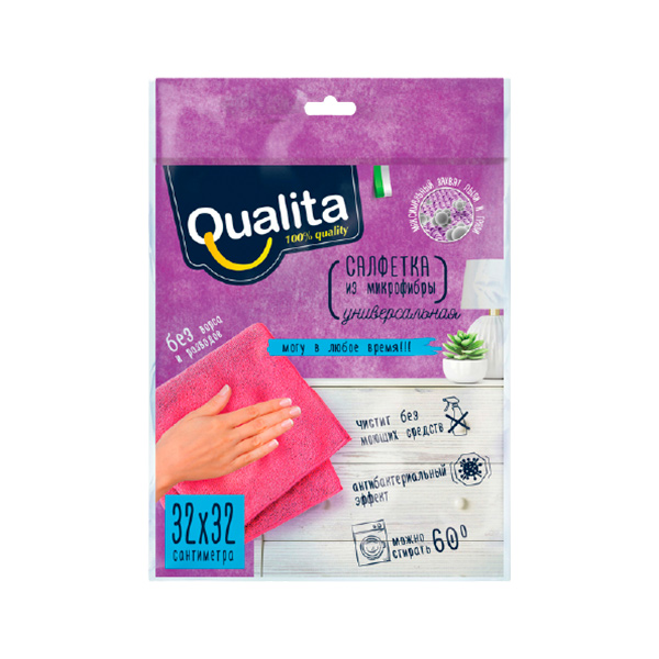 06. Хозтовары/Товары для дома » 6.1. Инвентарь для стирки/уборки » 6.1.1. Губки » 6.1.1.1. Губки универсальные » Салфетка универсальная [QUALITA] [32*32см] [микрофибра] [36735] [12/48]*