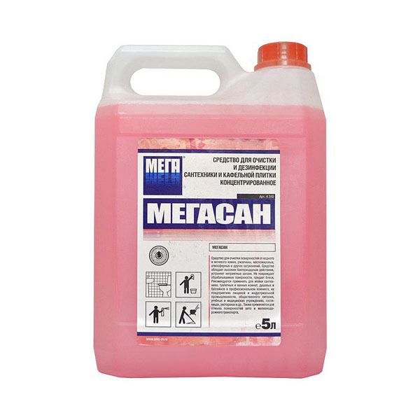13. Бытовая химия » 13.2. Чистящие и моющие средства » 13.2.1. Чистящие средства » 13.2.1.1. Средства для сантехники » Средство [Мегасан] [д/очистки и дезинф.сантехники и каф.плитки][конц][5л][К-310к][/3]*