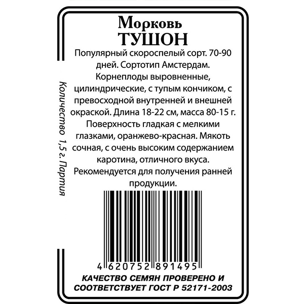 07. Для дачи » 7.3. Все для выращивания » 7.3.4. Семена » 7.3.4.2. Семена белая пачка » 7.3.4.2.1. Овощи б/п » Морковь [Тушон] [1,5гр] [ССС] [б/п] [/20]*