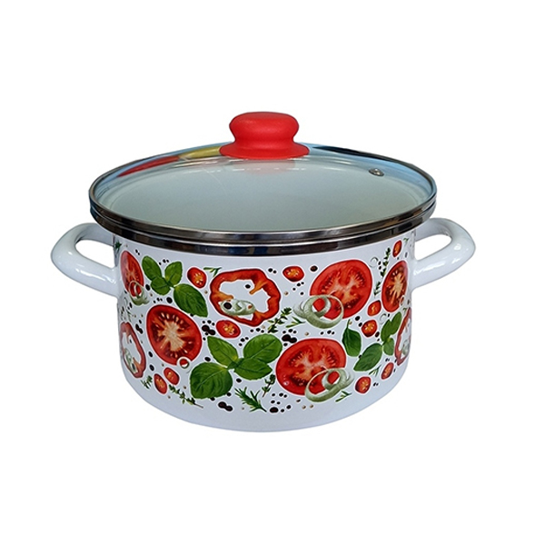 05. Для кухни » 5.1. Посуда и материалы для приготовления » 5.1.1. Кастрюли металлические, керамика » 5.1.1.3. Кастрюли эмалированные » Кастрюля [1.5л] [Omelia] [Томаты] [цил] [бл] [1-2215112] [/4]*