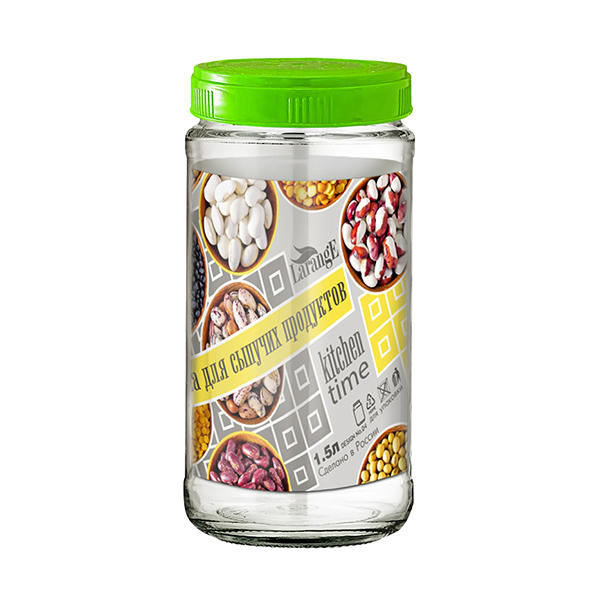 05. Для кухни » 5.4. Хранение продуктов » 5.4.2. Емкости » 5.4.2.4. Емкости для сыпучих » Банка д/сыпучих [БОБЫ] [1,5л] [зелёная крышка] [475-987-1] [/4]*