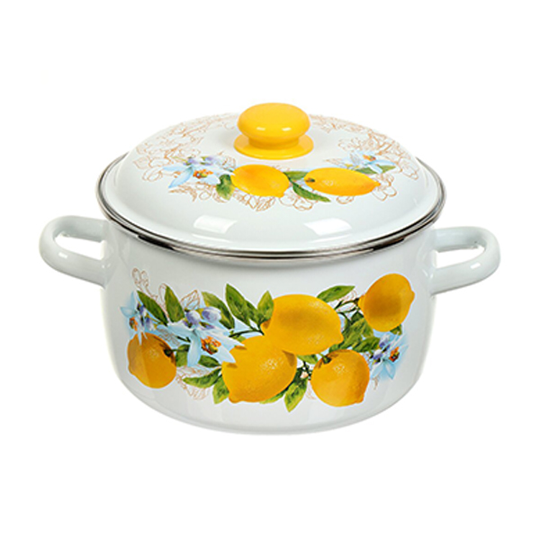 05. Для кухни » 5.1. Посуда и материалы для приготовления » 5.1.1. Кастрюли металлические, керамика » 5.1.1.3. Кастрюли эмалированные » Кастрюля [5,5л] [сферическая] [с ободком] [белая] [Лимоны] [3МС221Р] [/4]*