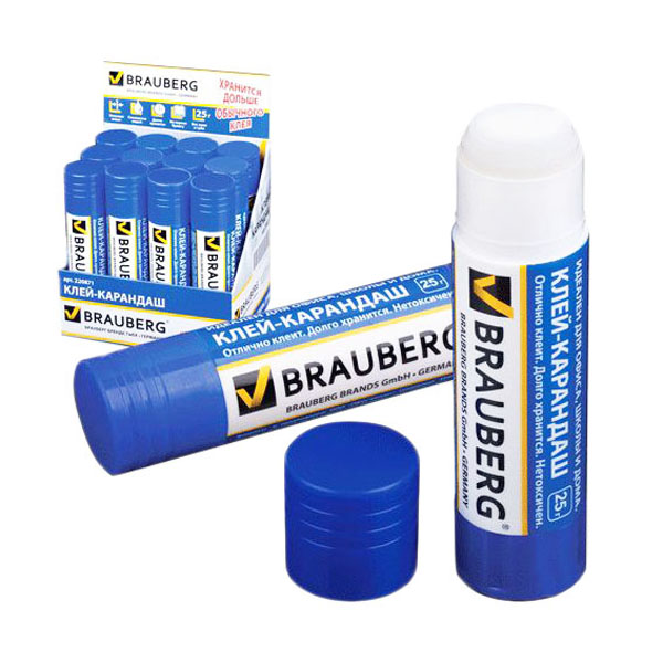 16. Канцелярия » 16.3. Офисные принадлежности » 16.3.3. Офисные мелочи (кнопки, скрепки, скобы, клей) » 16.3.3.3. Клей » Клей-карандаш [Brauberg] [25гр] [220871] [/1]*