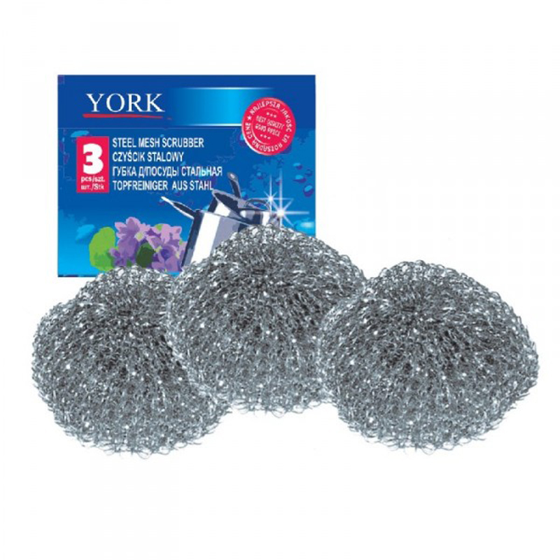 06. Хозтовары/Товары для дома » 6.1. Инвентарь для стирки/уборки » 6.1.1. Губки » 6.1.1.3. Губки металлические » Губка д/посуды [York] [стальн] [3шт] [003010] [/80]*