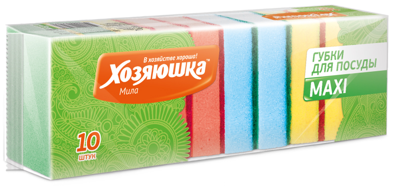 06. Хозтовары/Товары для дома » 6.1. Инвентарь для стирки/уборки » 6.1.1. Губки » 6.1.1.2. Губки для посуды » Губка д/посуды [Хозяюшка Мила] [MAXI] [10шт] [Г-08] [01001] [/26]*