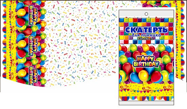 02. Одноразовая продукция » 2.7. Одноразовая продукция » 2.7.3. Скатерти » Скатерть [День рождения] [120*180] [д/пикника] [ПВД] [/50]