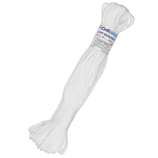 06. Хозтовары/Товары для дома » 6.2. Уход за одеждой/обувью » 6.2.4. Сушилки, прищепки, шнуры, веревки » 6.2.4.3. Шнуры и веревки » Шнур бельевой [Сибшнур] [D4мм] [L20м] [белый] [12011/30089] [60/70/80]