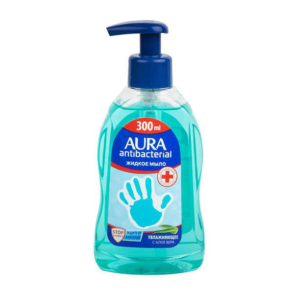 19. Средства Гигиены » 19.5. Мыло » 19.5.1. Жидкое мыло » Мыло жидкое [AURA] [АЛОЭ ВЕРА] [антибакт] [300мл] [с дозатором][05841] [8/12]*